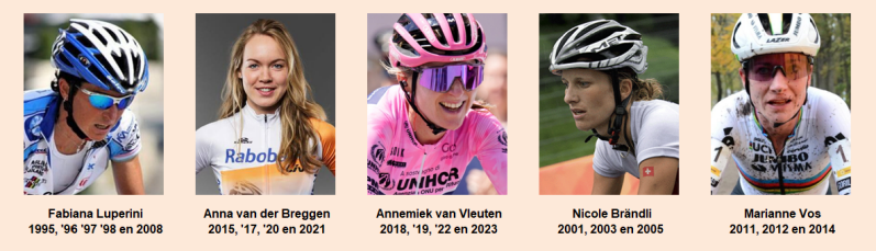 Fabiana Luperini (ITA) 1995, 1996, 1997, 1998, 2008