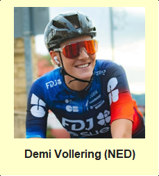 2025 Drôme Ardèche (FRA): 1 Demi Vollering (BEL), 2 Katarzyna Niewiadoma-Phinney (POL), 3 Anna Van Der Breggen (NED)
